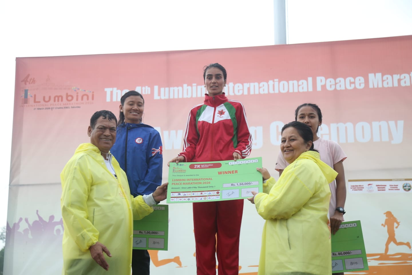 महिला हाफ म्याराथनमा विजेता पूर्णलक्ष्मीले एक लाख ५० हजार, उपवजेता सन्तोषीले एक लाख, तेस्रो हुने निशाले ८० हजार, चौथो हुने सुनसरीले ५० हजार र पाँचौं स्थान प्राप्त गर्ने रुवानले ३० हजार रुपैयाँ पुरस्कार प्राप्त गरे ।