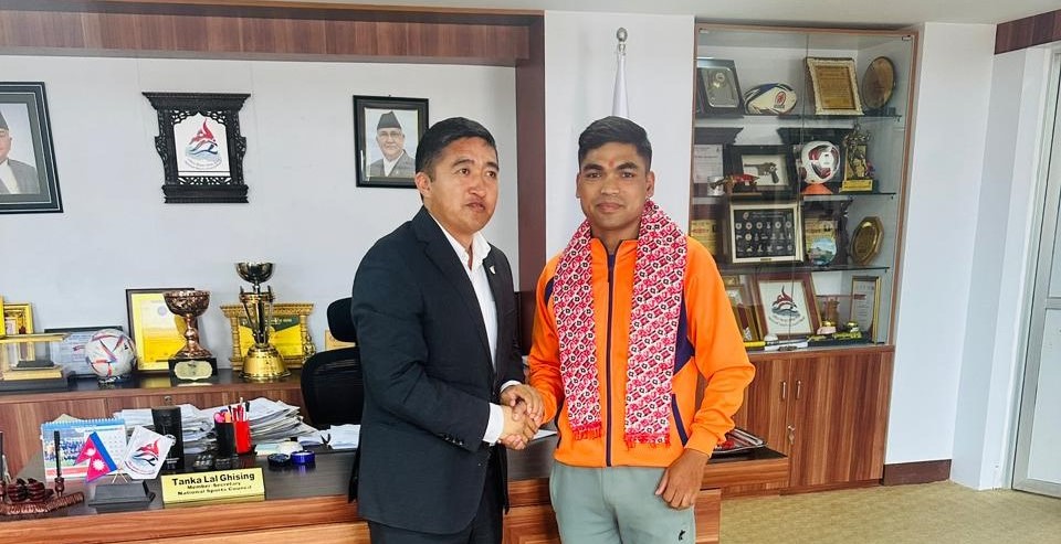 मंगलबार नेपालस्थित चिनियाँ दूतावासका ‘डेप्युटी चिफ दि मिसन’ वाङ झिनले राखेपका सदस्य–सचिव टंकलाल घिसिङलाई अन्तर्राष्ट्रिय खेलकुद परिसरमा आयोजित एक कार्यक्रमबीच करिब ८५ लाख रुपैयाँ बराबरको विभिन्न ३४ प्रकारका सामाग्री हस्तान्तरण गरेका हुन् ।