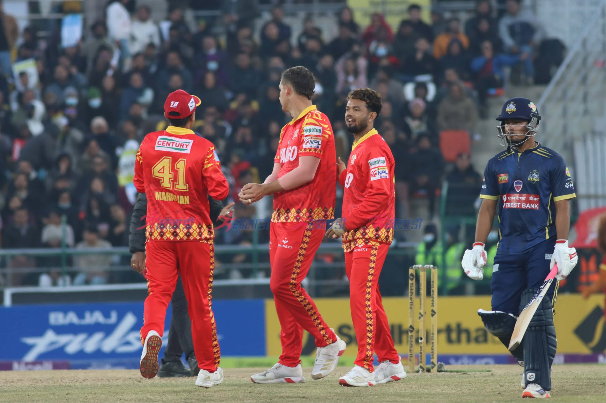 लुम्बिनीका लागि शेर मल्ले चार ओभरमा २५ रन खर्चिँदै तीन विकेट लिए । त्यस्तै जोनाथन स्मिथ, अभिशेष गौतम र रुवेन ट्रम्पलम्यानले समान एक विकेट लिए ।