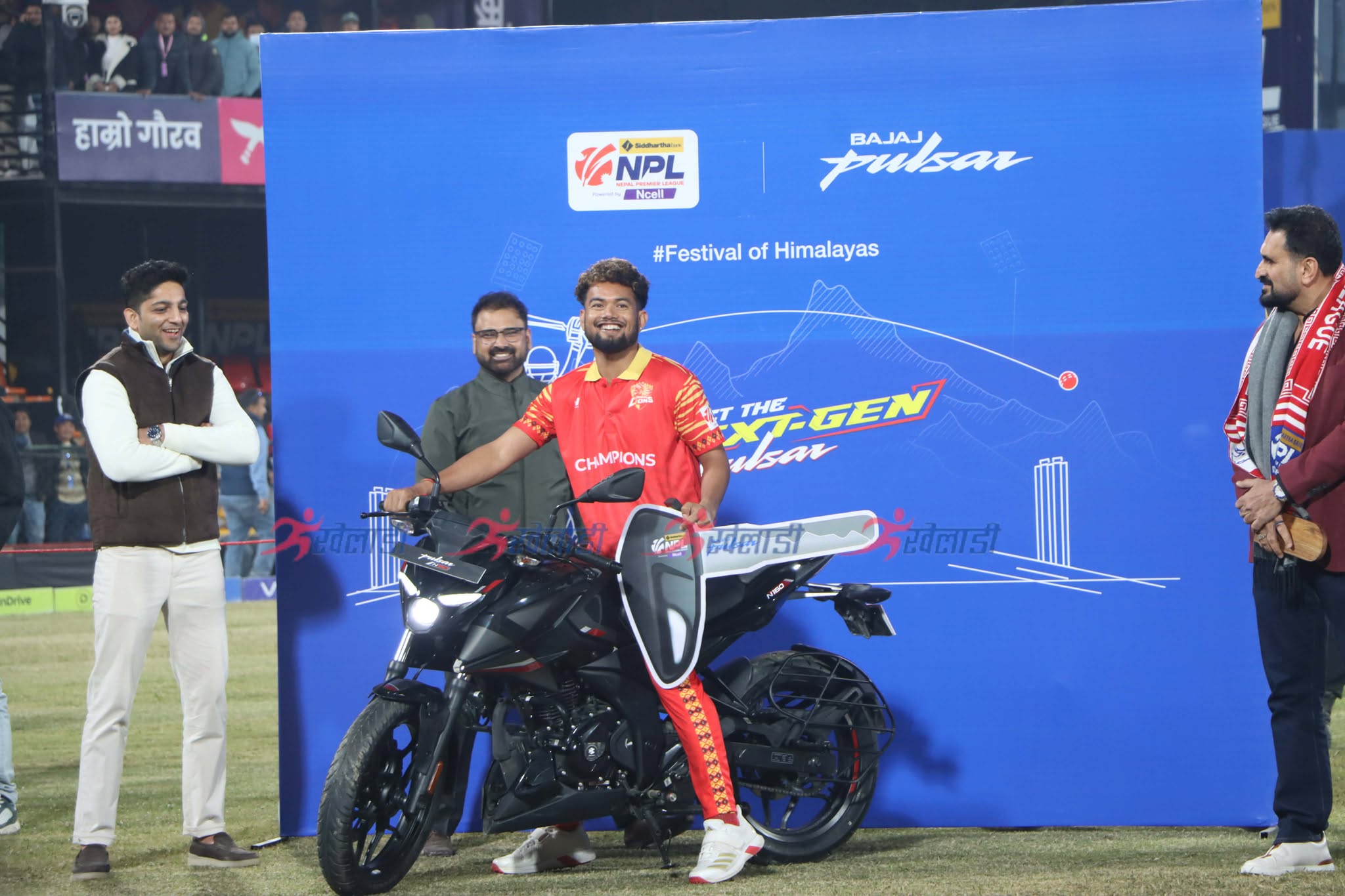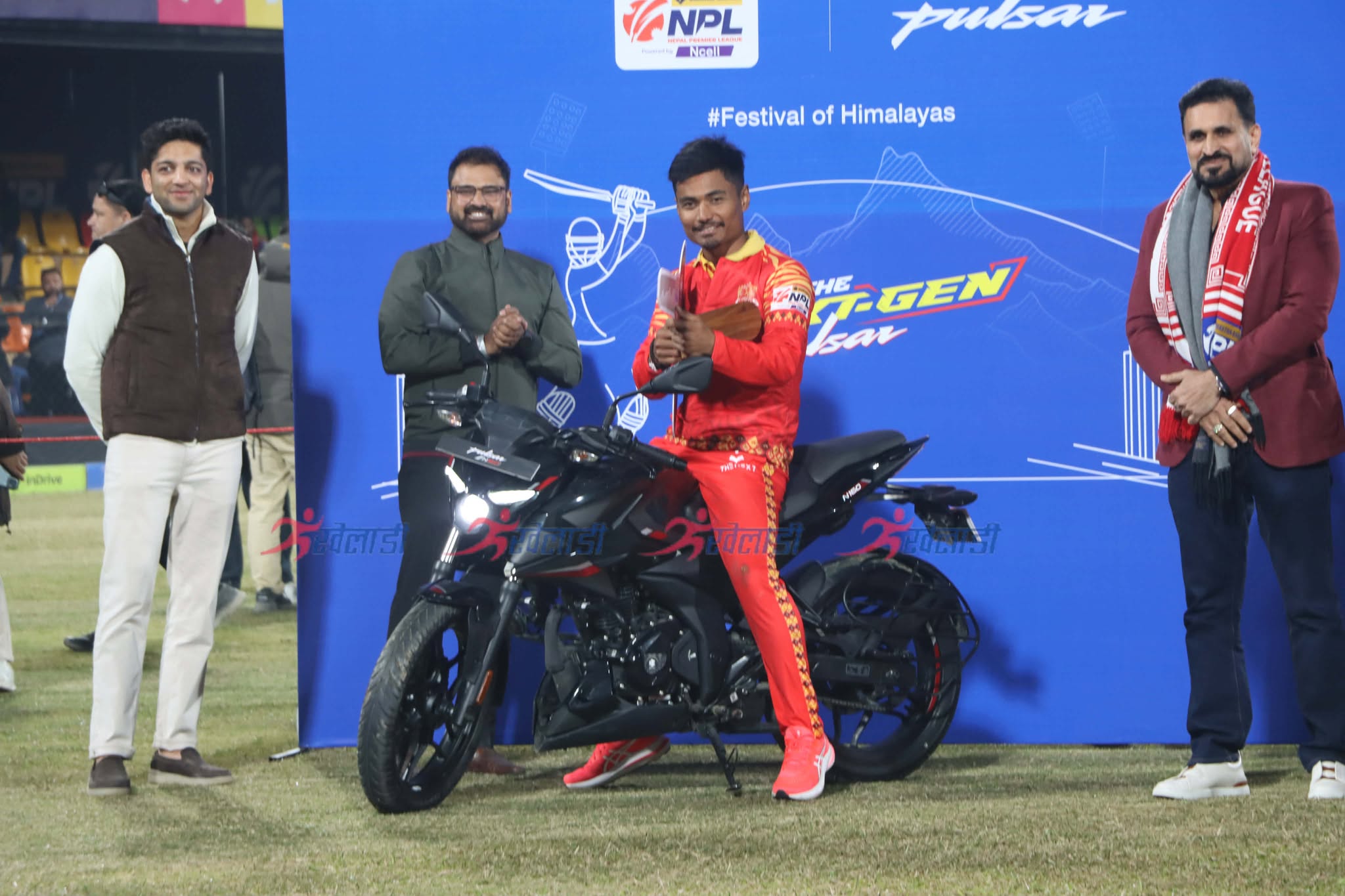 त्यस्तै रोहितका सहकर्मी शेर मल्लले एमर्जिङ प्लेयर घोषित भए । १० इनिङ्समा कूल १७ विकेट लिएका शेरले पनि बजाज पल्सर बाइक जिते ।