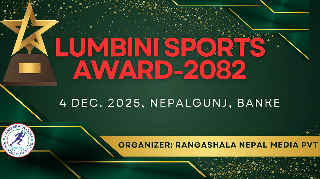 काठमाडौं । रंगशाला नेपाल मिडिया प्रालीले नेपालगन्जमा पहिलो पटक लुम्बिनी स्पोर्टस अवार्ड आयोजना गर्ने भएको छ । अवार्ड कार्यक्रमा आगामी मंसिर १८ गते हुनेछ ।