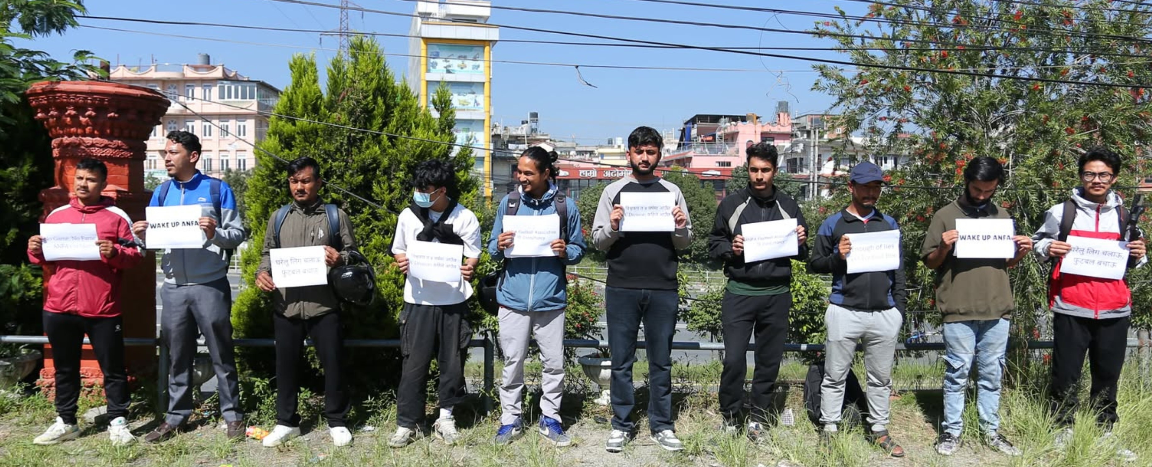 काठमाडौं । नेपाली फुटबलमा देखिएको अव्यवस्था, लिग स्थगन, आर्थिक अपारदर्शिता र नेतृत्वको गैरजवाफदेहिताविरुद्ध फुटबल समर्थकले सातदोबाटोस्थित आइतबार अखिल नेपाल फुटबल संघ (एन्फा) गेट अगाडि शान्तिपूर्ण धर्ना गरेका छन् ।
