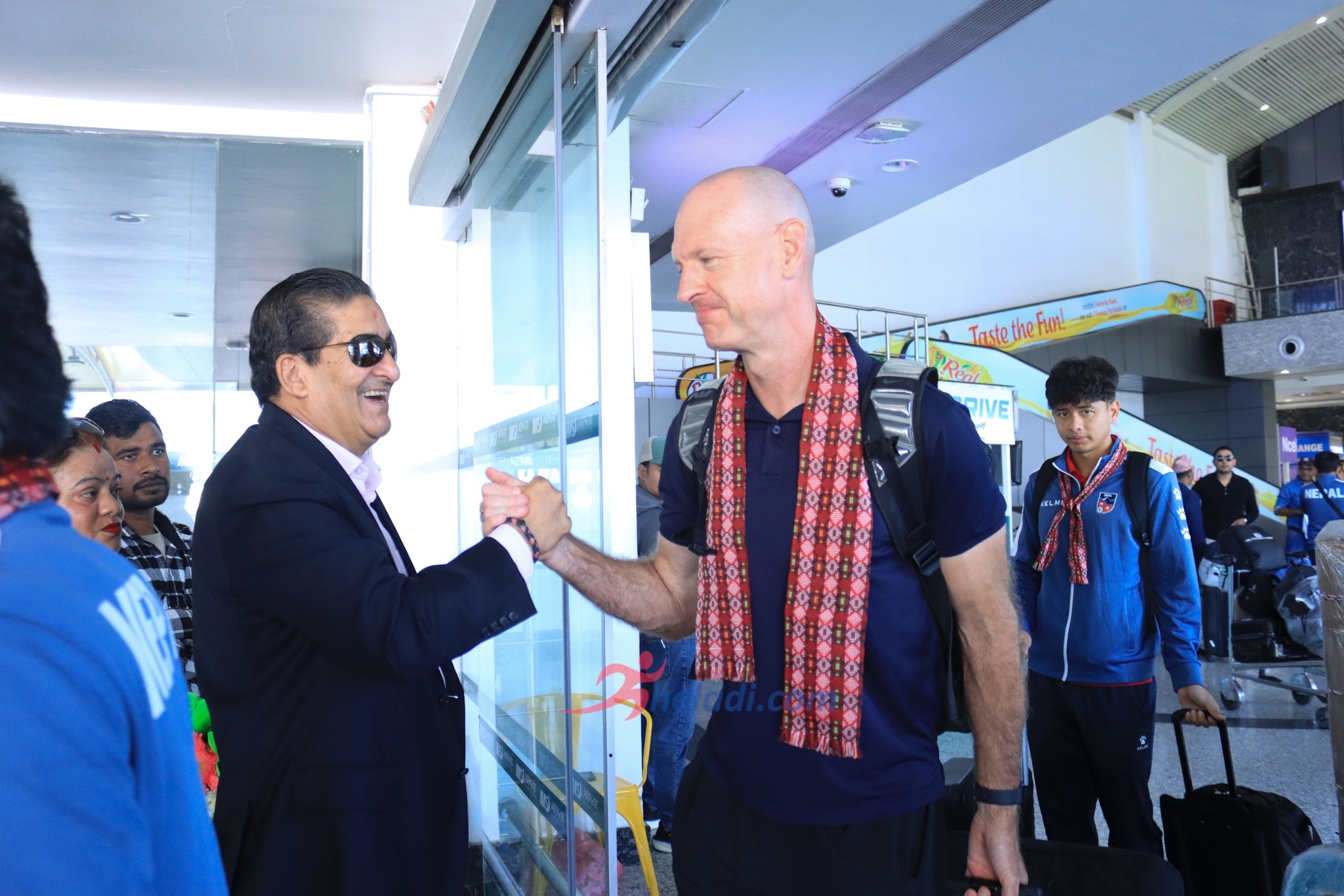 विश्व फुटबलको सर्वोच्च निकाय फिफाले लगाएको १० वर्षे प्रतिबन्धबाट फुकुवा भएपछि फुटबलका विभिन्न कार्यक्रममा देखिन थालेका थापा टिमको स्वागत गर्न विमानस्थल भने पहिलो पटक पुगेका हुन् ।