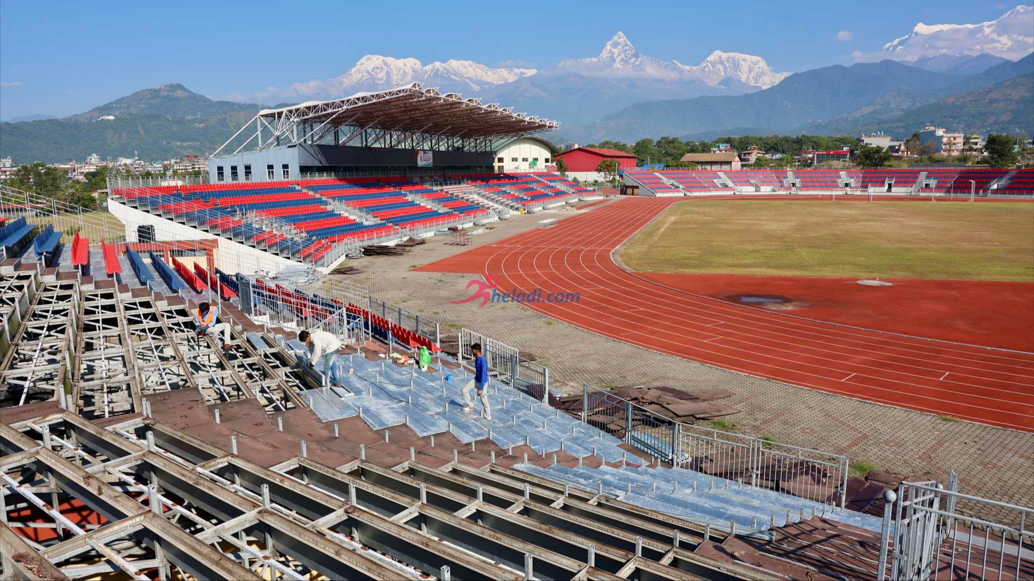 २०७६ मा भएको दक्षिण एसियाली खेलकुद (साग) लाई लक्षित गरियो मैदानको पुनर्निमार्ण सुरु गरिएको थियो । त्यती बेला मैदानले पूर्णता नपाए पनि महिला फुटबल यही मैदानमा सञ्चालन गरिएको थियो ।