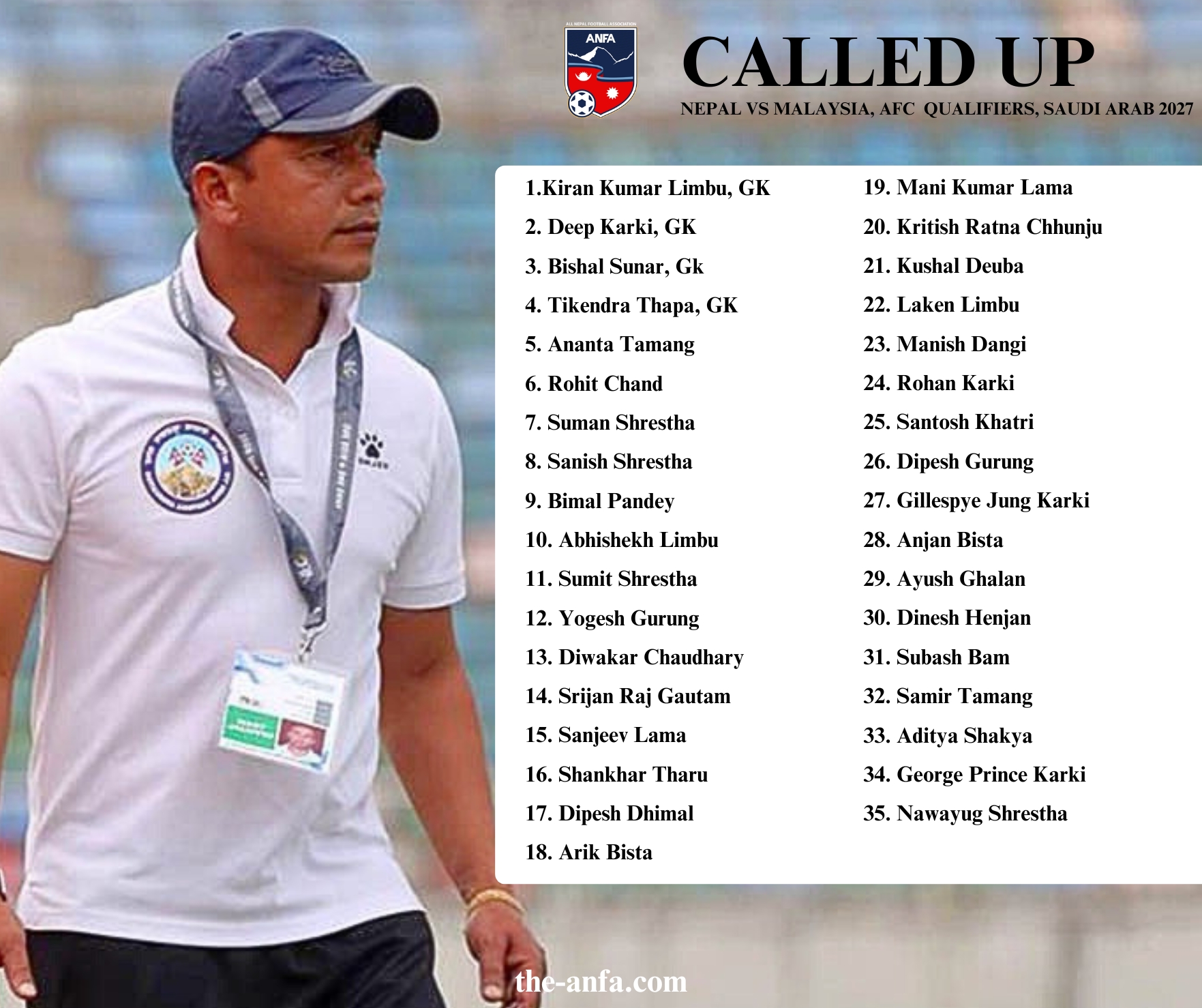 भियतनामविरुद्धको दुई लेगका लागि प्रारम्भिक छनोटमै नपरेका अट्याकिङ मिडफिल्डर सृजनराज गोतमसँगै भेट्रान फरवार्डहरु जर्ज प्रिन्स कार्की र नवयुग श्रेष्ठले टोलीमा पुनरागमन जनाएका छन् । यसबाहेक गत जेठमा सम्पन्न नेपाल सुुपर लिग (एनएसएल)को तेस्रो संस्करण काठमाडौं रेजर्सको जर्सीमा देखिएका दीवकार चौधरी र दीपेश गुरुङ अनि झापा एफसीको प्रतिनिधित्व गरेका दीपेश धिमाल टोलीमा परेका छन् ।