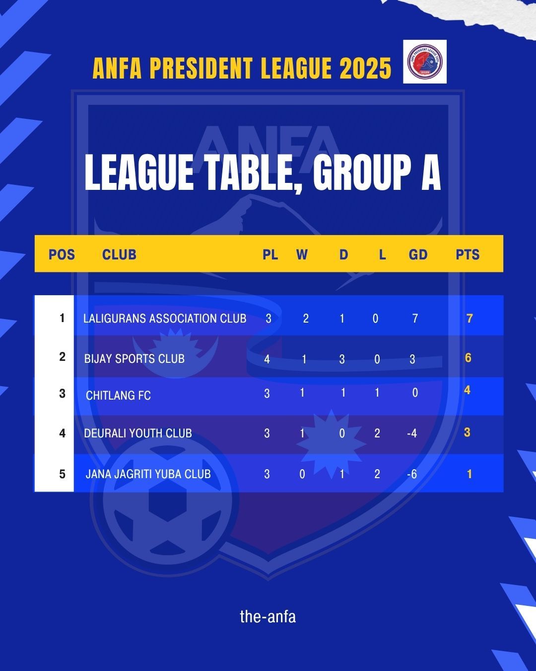 तीन खेलमा चार अंक जोडेको चित्लाङको यो पहिलो हार हो । पहिलो खेलमा देउराली युथ क्लबमाथि ४-१ को जित हासिल गरेको चित्लाङले त्यसपछि विजयी स्पोर्टससँग १–१ को बराबरी खेलेको थियो । बिहीबार अन्तिम खेलमा जन जागृतिलाई पराजित गरे चित्लाङले पनि राष्ट्रिय लिगमा स्थान बनाउने समीकरण बनेको छ ।