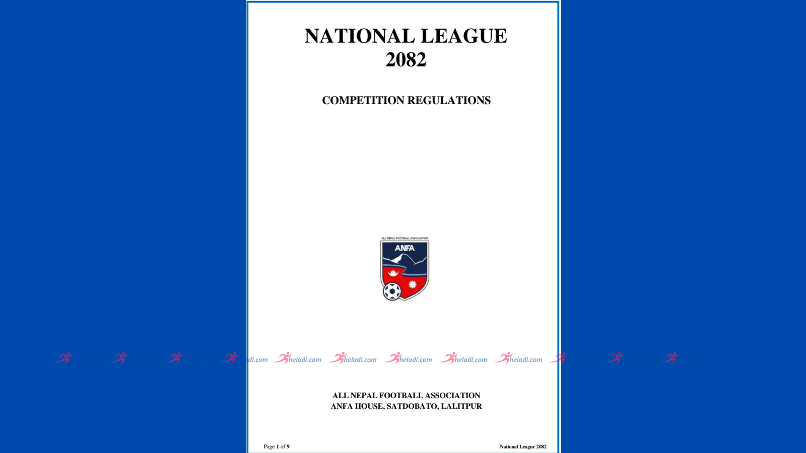 राष्ट्रिय लिगका सहभागी टिमलाई पठाइएको नियमावलीको मुख्य पृष्ठ ।