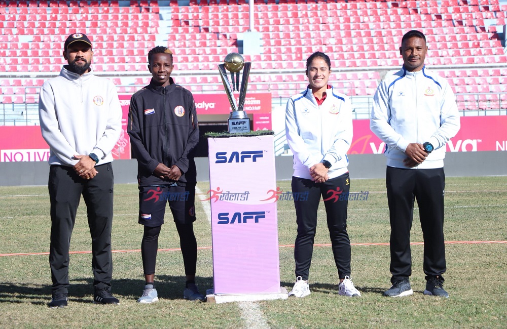 त्रिपुरेश्वरस्थित दशरथ रंगशालामा शनिबार साफ महिला क्लब च्याम्पियनसिपको पहिलो संस्करणको फाइनल खेल हुँदैछ । उपाधिका लागि भिड्दैछन् नेपाल एपिएफ क्लब र भारतको इस्ट बङ्गाल क्लब । राउन्ड रोविन प्रतिस्पर्धापछि सहभागी अन्य तीन टोलीलाई पछाडि पार्दै यी दुईले फाइनलमा स्थान बनाएका हुन् ।