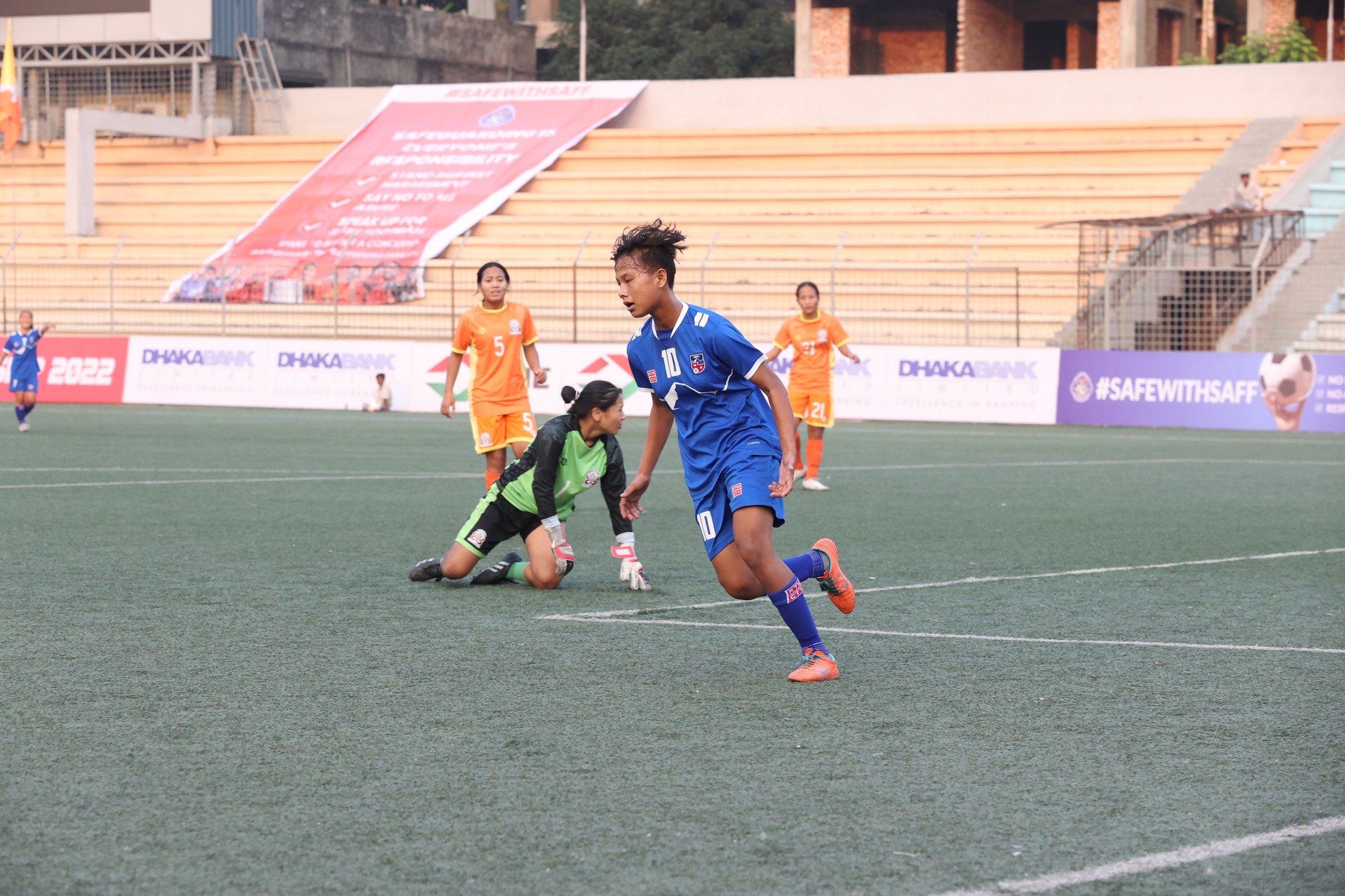 पहिलो लेगमा पाँचमध्ये दुई गोल अट्याकिङ मिडफिल्डर सेनु परियारले गरेका थिए । सेनुका लागि भुटान ‘फेबरेट’ प्रतिद्धन्द्धीभन्दा फरक पर्दैन । ढाकामै सम्पन्न पाँचौं संस्करणमा नेपालले भुटानमाथि १–० को संघर्षपूर्ण जित हासिल गरेको थियो । खेलको निर्णायक गोल सेनुले नै गरेकी थिइन् । यति मात्र कहाँ हो र ? गत वर्ष साफलगत्तै अगस्टमा भएको एएफसी यु–२० छनोटमा नेपालले घरेलु टोली भुटानसँग १–१ को बराबरी खेलेको थियो । नेपाललाई सुरुआती अग्रता सेनुले नै दिलाएकी थिइन् ।