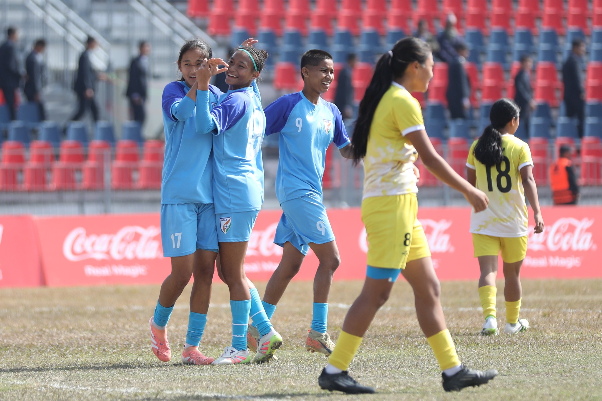 बुधबार लिगको अन्तिम खेलमा भुटानमाथि ८-० को फराकिलो जित हासिल गर्दै भारतले फाइनलमा एक पाइला अगाडि सारेको हो । जितसँगै भारत दुई खेलमा ६ अंक र सात गोलको भिन्नताका साथ दोस्रो स्थानमा उक्लियो । लगातार तेस्रो हारसँगै भुटान प्रतियोगितबाट बाहिरिने पहिलो टोली बनेको छ ।
