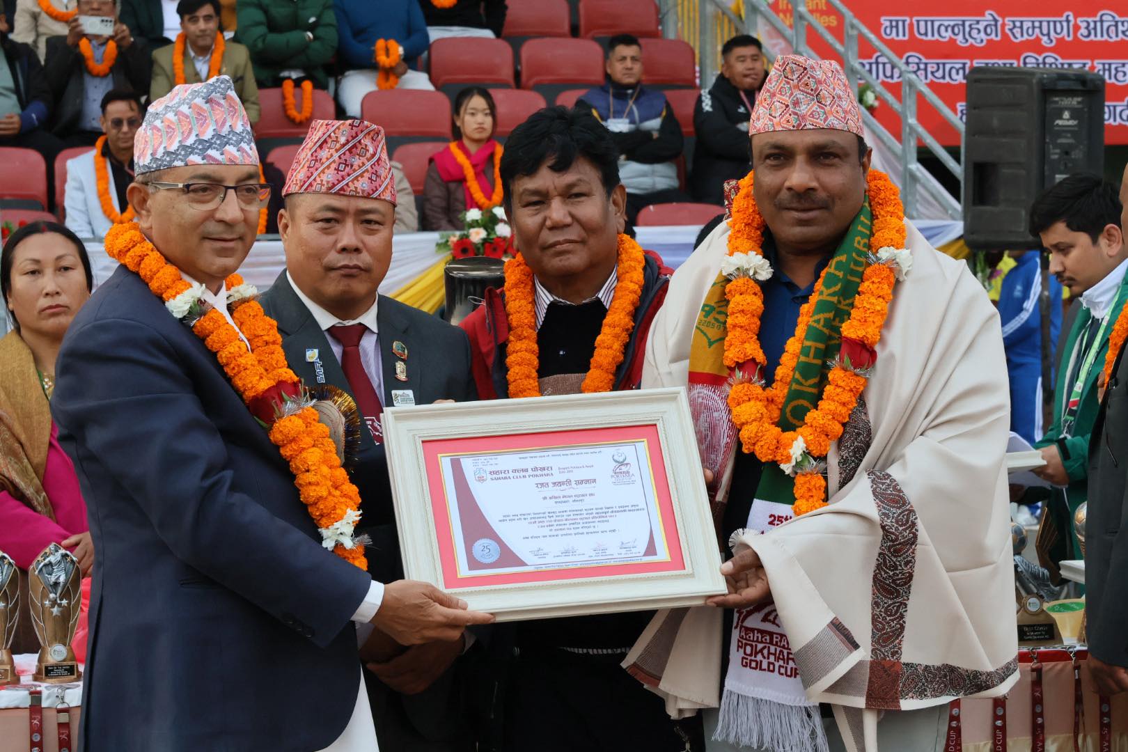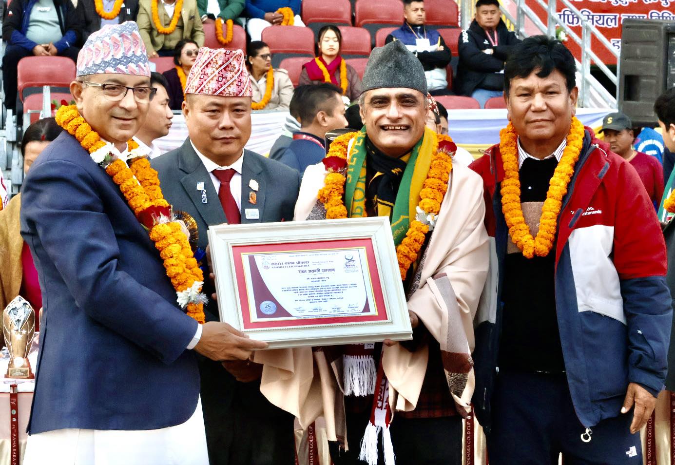 यसैगरी आयोजकले प्रतियोगितालाई २५ औं संस्करणसम्म ल्याउन अतुलनीय योगदान पुर्याउने २५ व्यक्ति तथा संस्थालाई समेत क्लबले विशेष सम्मान गरेको छ । सम्मानित हुनेमा गोल्डकपका मुख्य प्रायोजक हिमश्री फुड्सका निर्देशक प्रकाश केसी, किरण केसी र रोशन केसीसहित विक्रम थापा, पत्रकार अजय फुयाल, प्रकाश तिमल्सिना, दीपेन्द्र श्रेष्ठ, मिलन तमु, दिलीप राई, राष्ट्रिय खेलकुद परिषद, अखिल नेपाल फुटबल संघ(एन्फा), हरिकुमार श्रेष्ठ, प्रकाश शेरचन, खेमबहादुर गुरुङ, टीकाबहादुर कार्की, सुनिलकुमार गुरुङ, फेवा सिटी हस्पिटल, देव गुरुङ, पोखरा महानगरपालिका, स्व. हेमबहादुर गुरुङ, स्व.राजमान थकाली, दीपक गुरुङ, कृष्ण गुरुङ र केशवराज बराल छन् ।