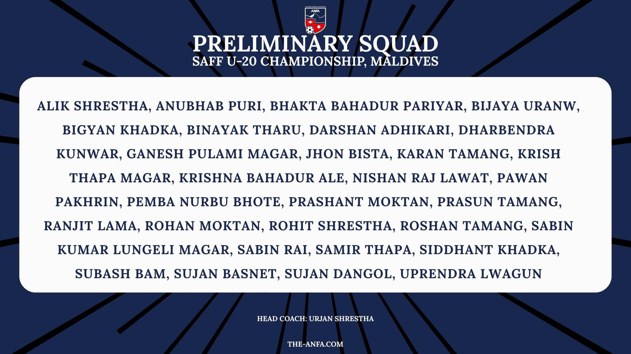 फाइनल चरणको छनोटमा कप्तान राम थापा भने अटाउन सकेनन् । राजधानीमा जारी एन्फा राष्ट्रिय लिगमा लालिगुँरास एसोसिएसन क्लबबाट खेलिरहेका रामले गत वर्ष साफ यु–१९ च्याम्पियनसिपमा क्याप्टेन आर्मब्यान्ड लगाएका थिए । उनीसँगै उनका भाई लछ्छु थापा पनि टोलीमा छैनन् । राम र लछ्छु दुबैसँग उमेर समूहका अन्तर्राष्ट्रिय प्रतियोगिताको बाक्लो एक्सपोजर छ ।
