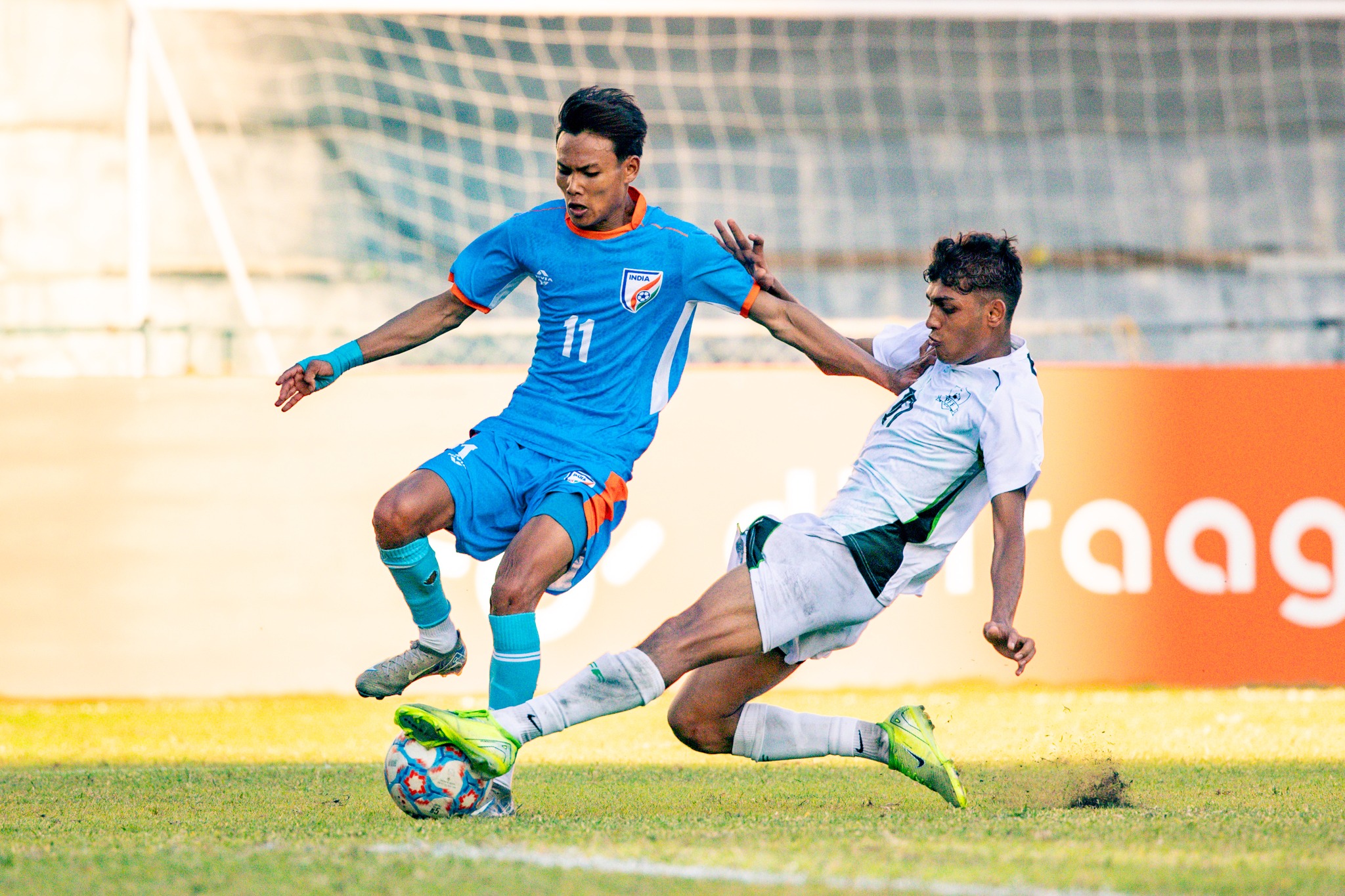 मालेस्थित राष्ट्रिय फुटबल रंगशालामा भारतको जितमा ओमाङ डोडुमले दुई तथा विशाल यादवले एक गोल गरे । समूह ‘बी’मा भारतको यो पहिलो खेल हो । यो नतिजासँगै बंगलादेशले पनि एक खेलअगावै अन्तिम चारमा स्थान सुरक्षित गरेको छ ।