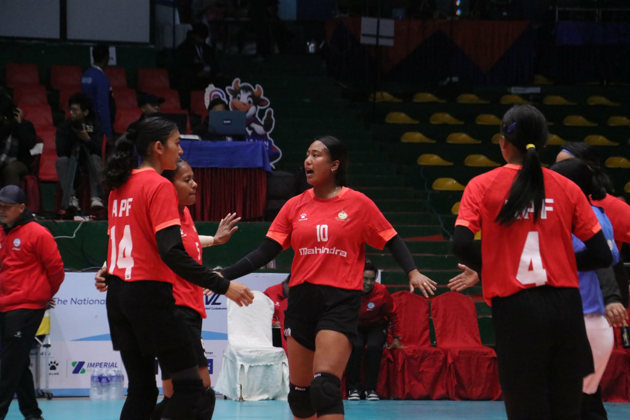 शनिबारमात्रै एपिएफले मधेश प्रदेश खेलकुद परिषद्लाई ३–० को सोझो सेटमा हराएको थियो । यो खेलमा एपिएफले ७५ अंक जोड्दा मधेशले मात्र १३ अंक जोडेको थियो । एपिएफकी निरुता ठगुन्नाले एक्लै १३ अंक जोडेको थिइन् । सुदूरपश्चिम पहिलो खेलमै अर्काे विभागीय टोली नेपाल पुलिस क्लबसँग सोझो सेटमा पराजित भएको थियो ।